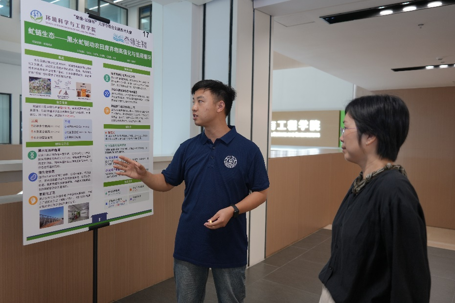在决赛项目答辩展示环节,各参赛队伍以清晰的逻辑、详实的数据和饱满的热情,系统展示了项目的创新性、技术可行性、环境效益与应用前景,充分展现了扎实的专业功底和卓越的科创能力。评审专家从技术深度、应用潜力、环境影响等多维度对项目进行了综合评审。