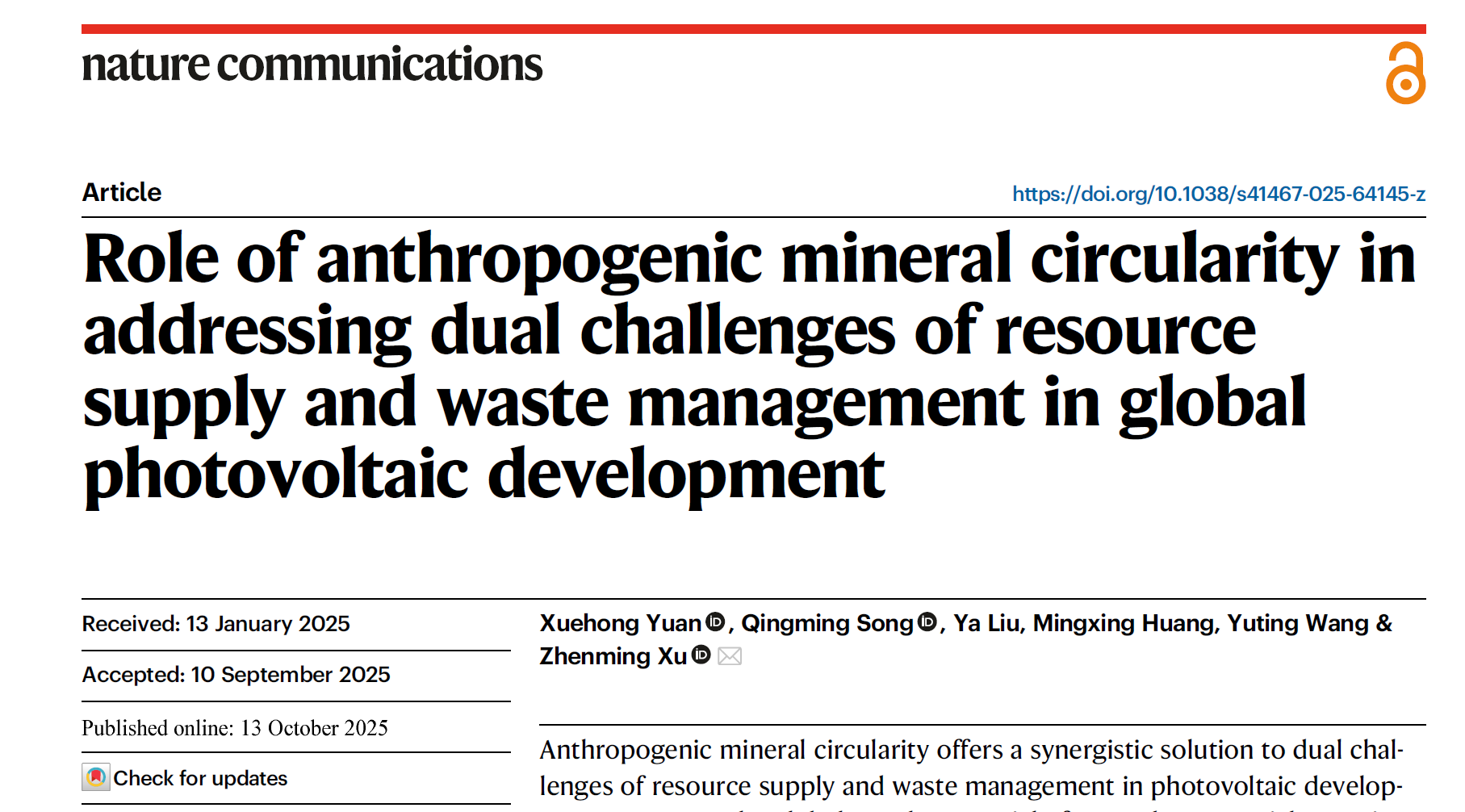 近日,伟德bevictor中文网页许振明教授团队在《Nature Communications》在线发表了题为“Role of anthropogenic mineral circularity in addressing dual challenges of resource supply and waste management in global photovoltaic development”的研究成果。该研究从全球尺度定量揭示了在人类能源转型过程中,人为矿物循环(Anthropogenic Mineral Circularity)在缓解光伏产业发展所面临的资源短缺与废物管理双重挑战中的关键作用。论文第一作者为伟德bevictor中文网页2022级博士生袁学宏,许振明教授为论文唯一通讯作者。本研究工作获得国家重点研发计划资助。